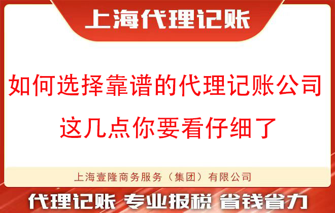 綜上所述,選擇靠譜的代理記賬公司需要您從多個方面進(jìn)行綜合考慮和評估。通過仔細(xì)比較不同公司的優(yōu)缺點,結(jié)合您的實際需求選擇合適的合作伙伴,將有助于您更好地管理企業(yè)財務(wù)并規(guī)避潛在風(fēng)險。上海壹隆專業(yè)代理記賬15年,可為您量身定制財務(wù)方案,歡迎咨詢!
